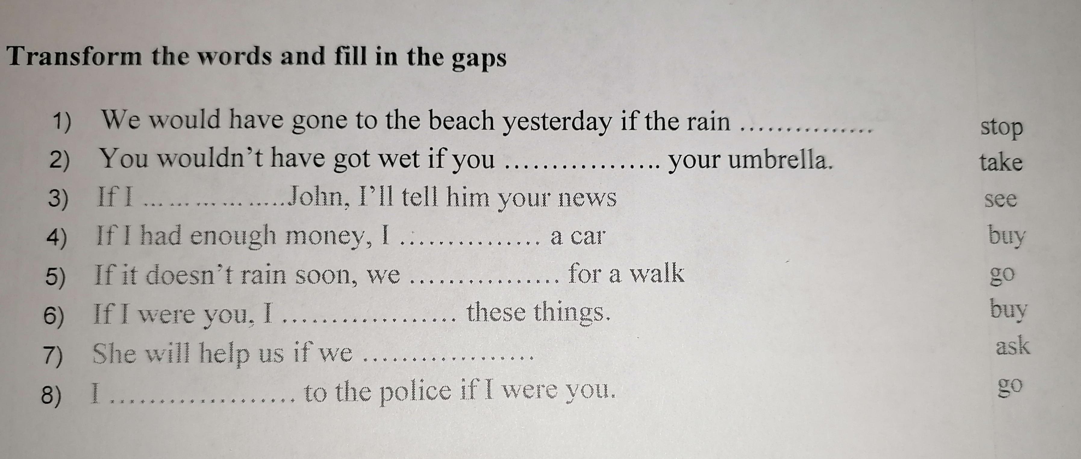 английский язык, 8 класс. нужно поставить слова из столбика в правильную форму в предложения, помогите!!