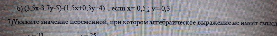 (3,5x - 3,7y - 5)- (1,5x + 0,3y + 4) = 3,5x - 3,7y - 5 - 1,5x - 0,3y - 4 = 2x - 4y - 9