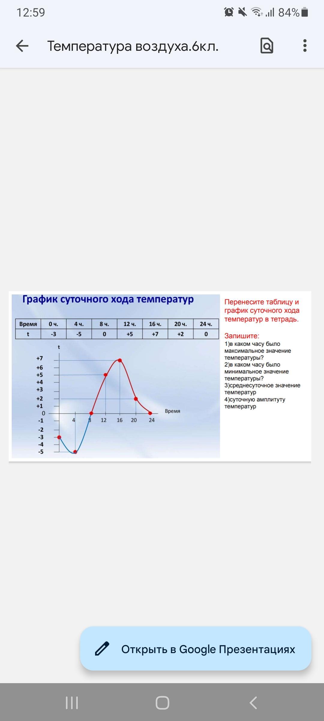 1)в 16 часе. 2) в 4 часе.3) 2 градуса. 4) амплитуда равна 12°