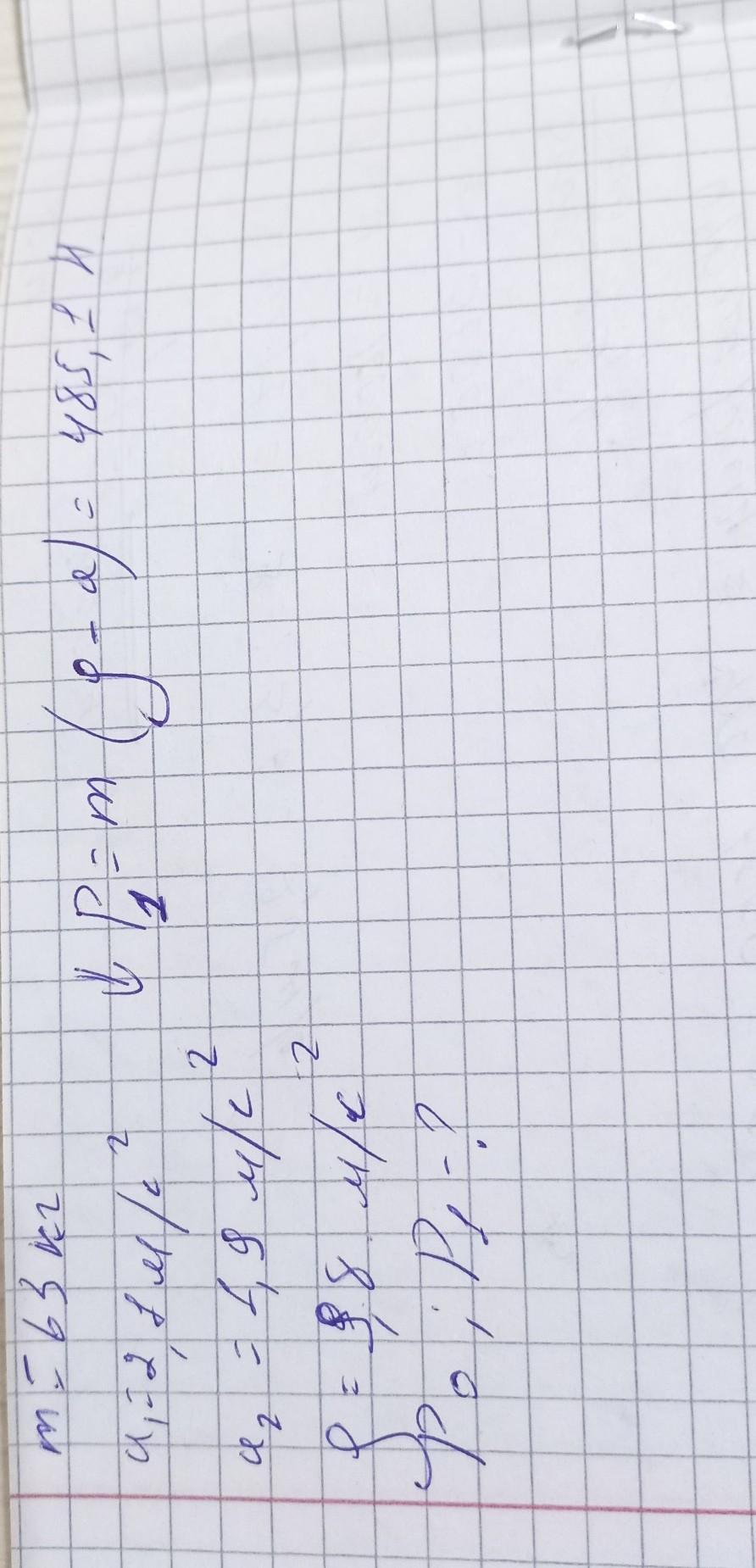 Р2 = 63 кг * ( 9,8 - 1,9 ) = 497,7. Н.