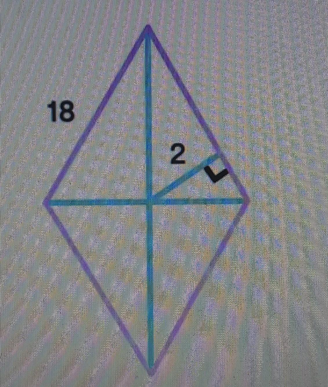 все стороны ромба равны 18, диагонали разбивают его на 4 равных прямоугольных треугольника, площадь одного из них 2*18/2=18, поэтому площадь ромба равна 18*4=72 /ед. кв./