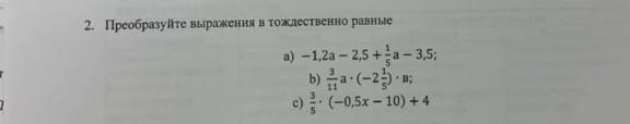 а) -1,2а-2,5+1/5 *а-3,5=-1,2а+0,2а-2,5-3,5=-а-6