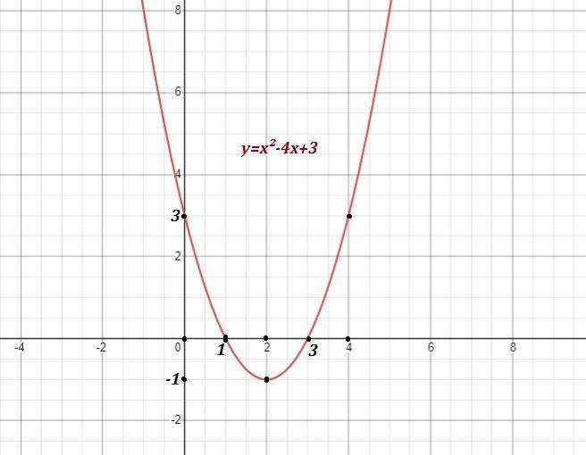 Побудуйте графік функції y=x²-4x+3 . За графіком знайдіть: