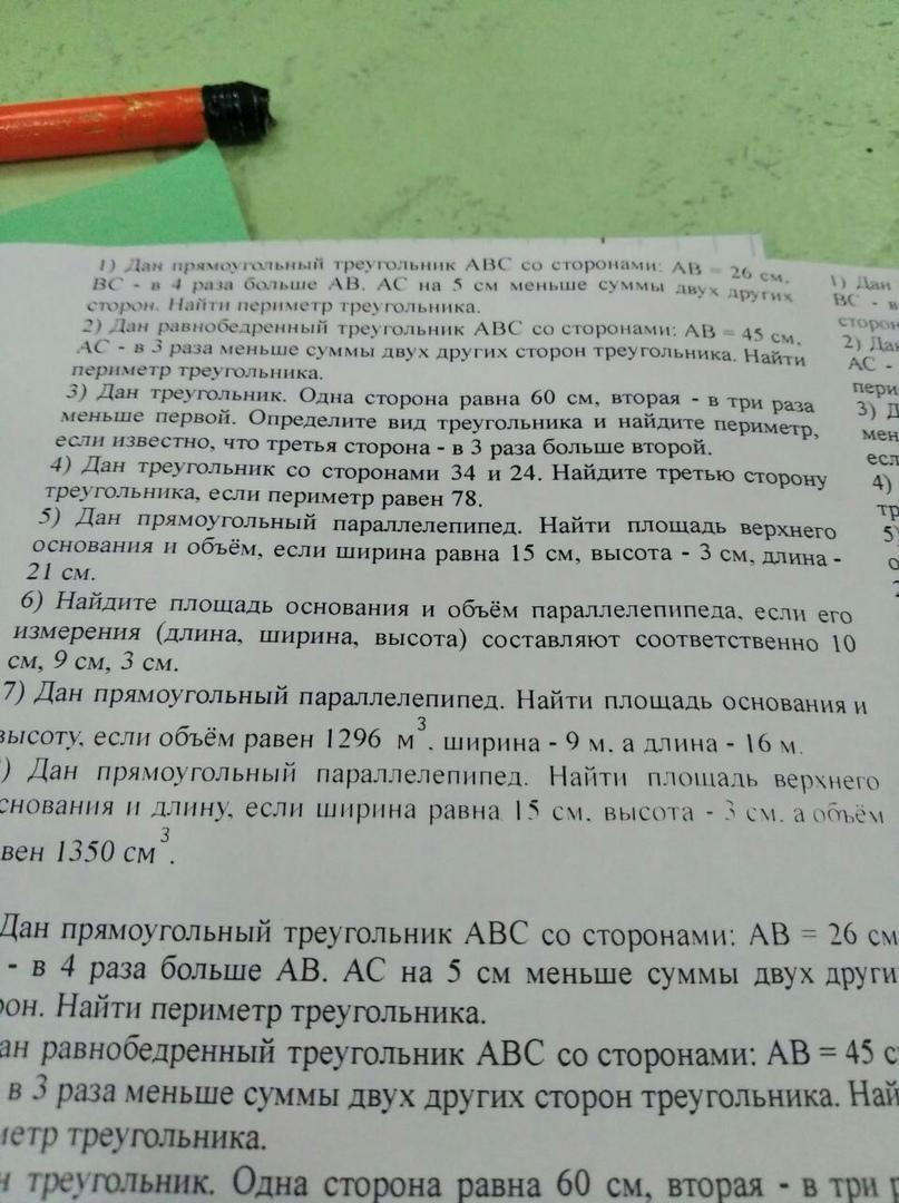 6) S oc = a*b = 10 * 9 = 90 ( см² ) ; V = abc = 10 * 9 * 3 = 90 * 3 = 270 ( см³ ) ;