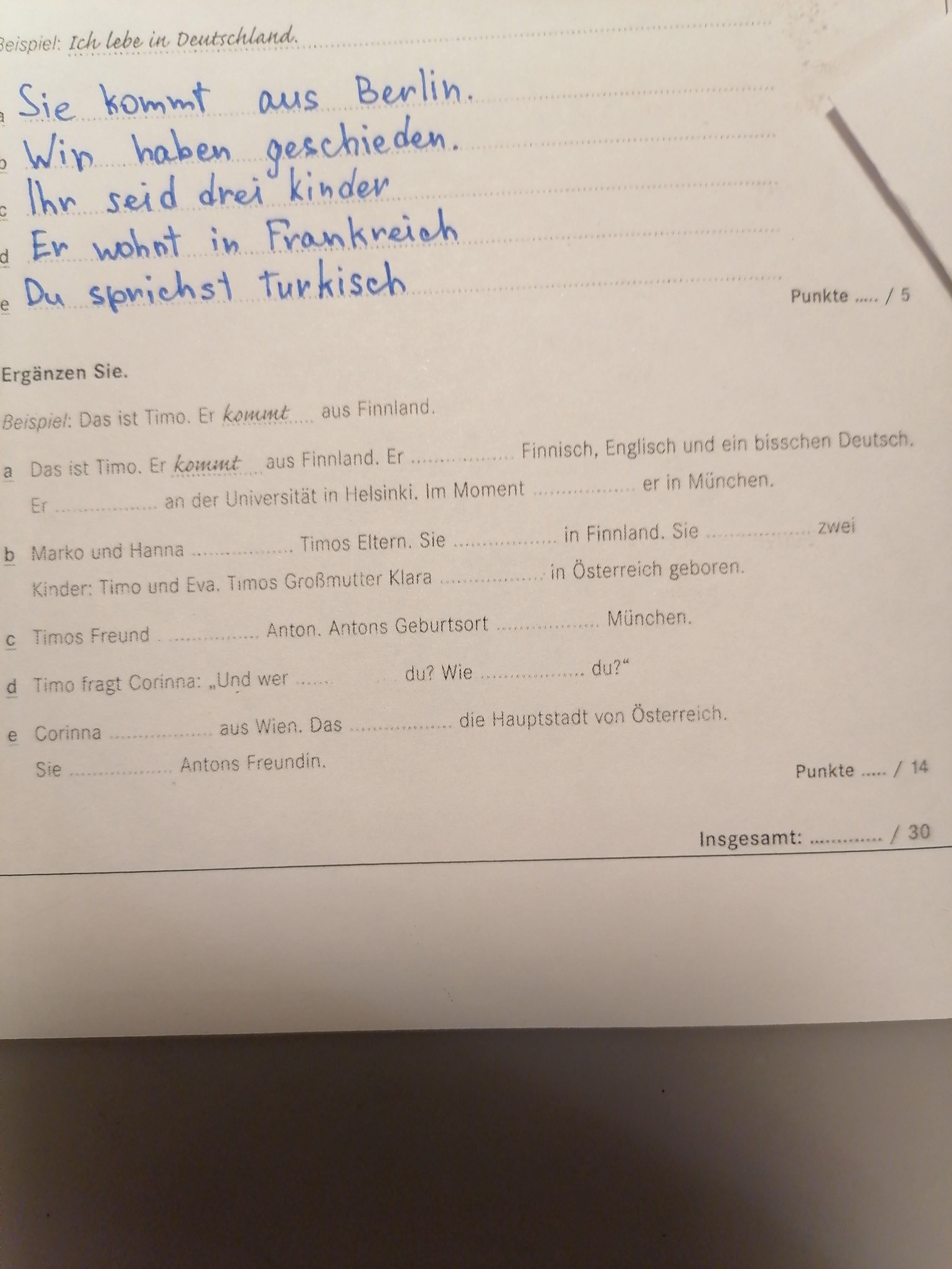 b) sind, wohnen, sind, hat