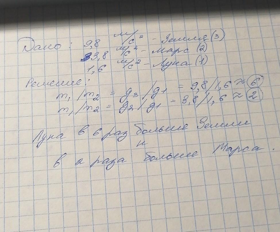 1. При взвешивании тел на Земле, Луне и Марсе пружинные весы по- казали одно и то же значение. Сравните массы взвешиваемых тел.