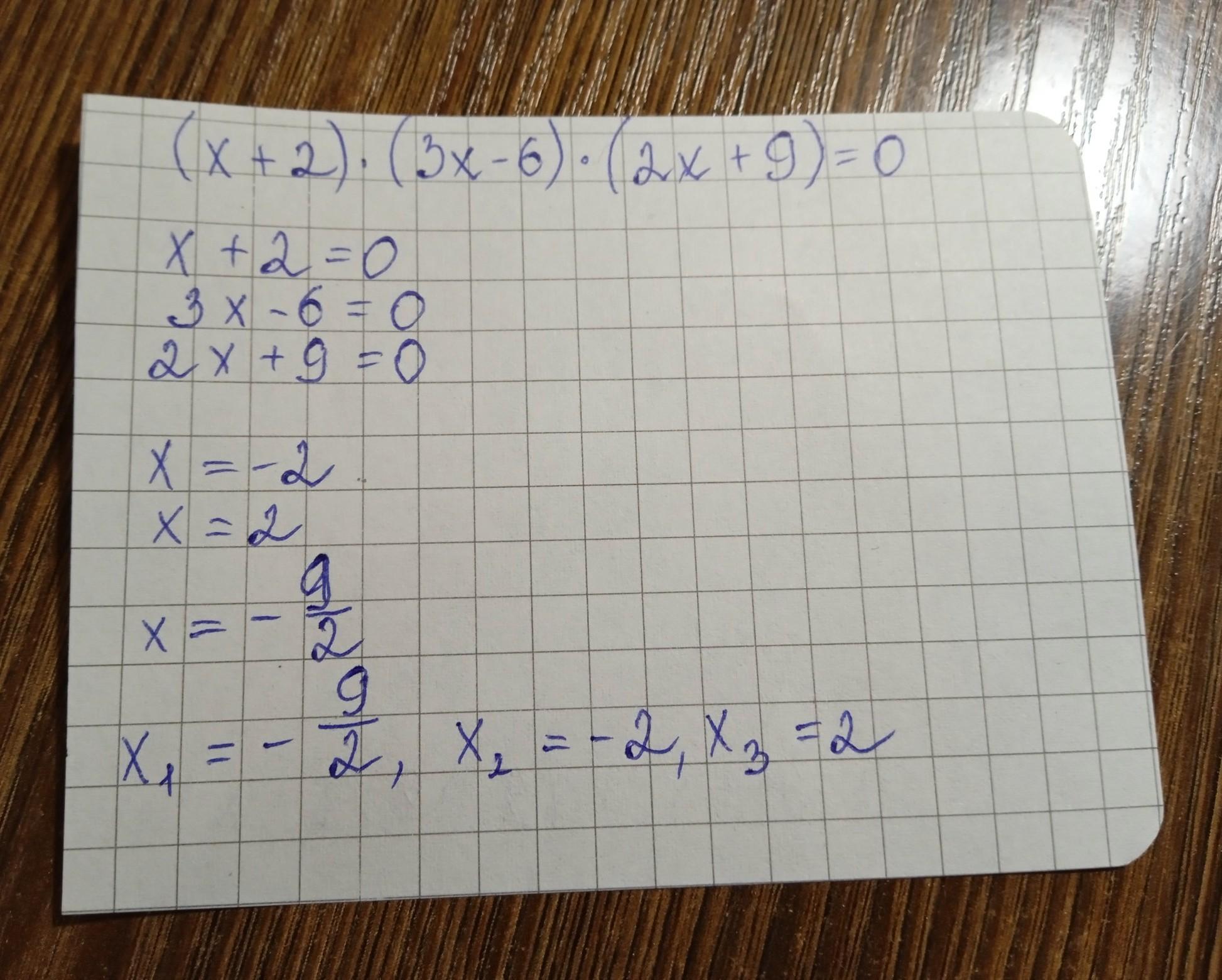 x + 2 = 0 или 3x - 6 = 0 или 2x + 9 = 0