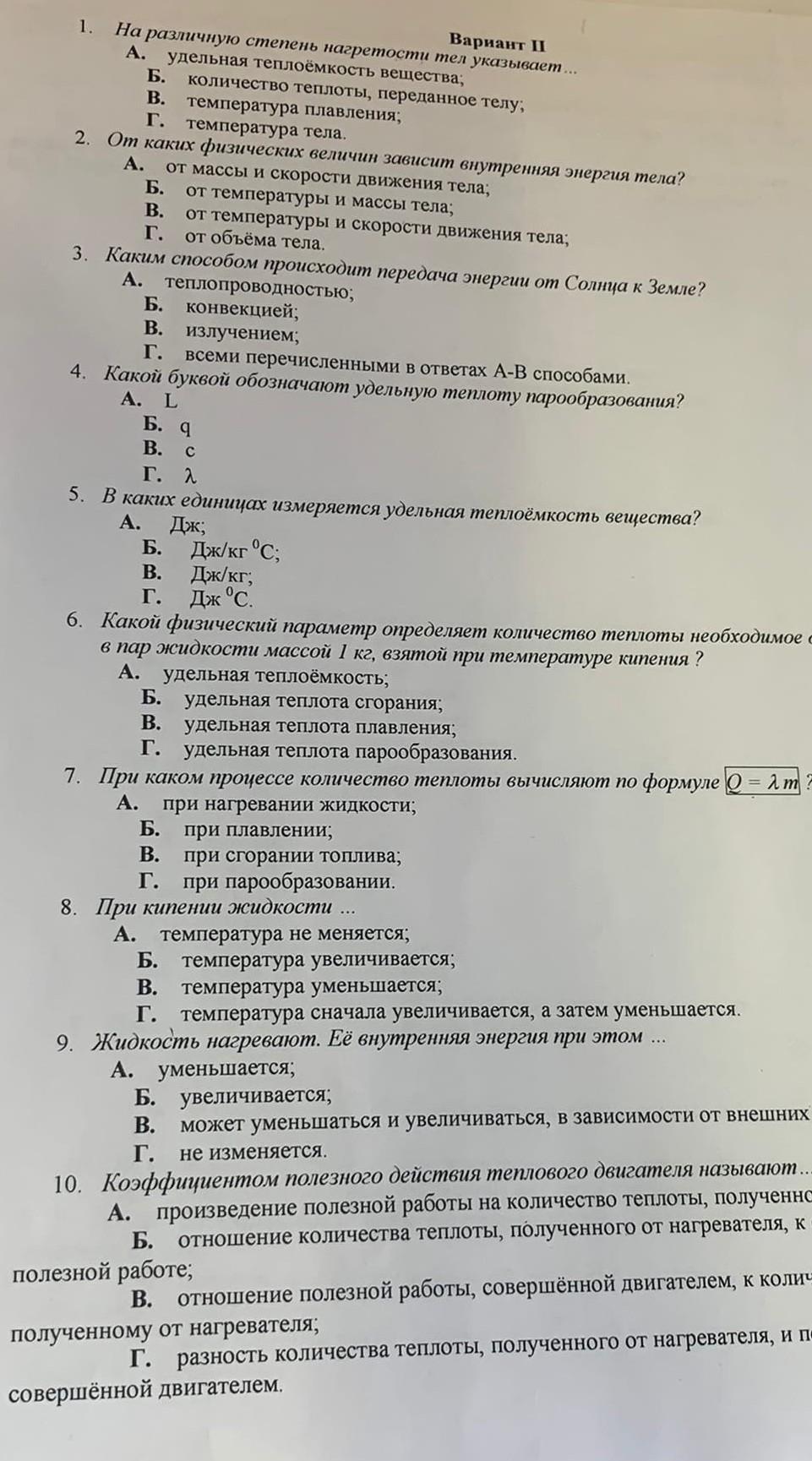 Ответ: 1В 2- 3В 4А 5Б 6Г 7Б 8А 9Б 10В