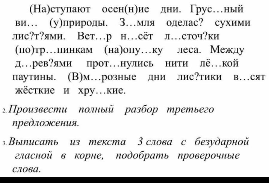 Ответ:наступают осенние дни. грустный вид у природы. земля оделась сухими листьями. ветер несет листья по тропинке к опушке леса. Между деревьями протянулись нити легкои паутины. В морозные дни листики весят жесткие ихрупкие.