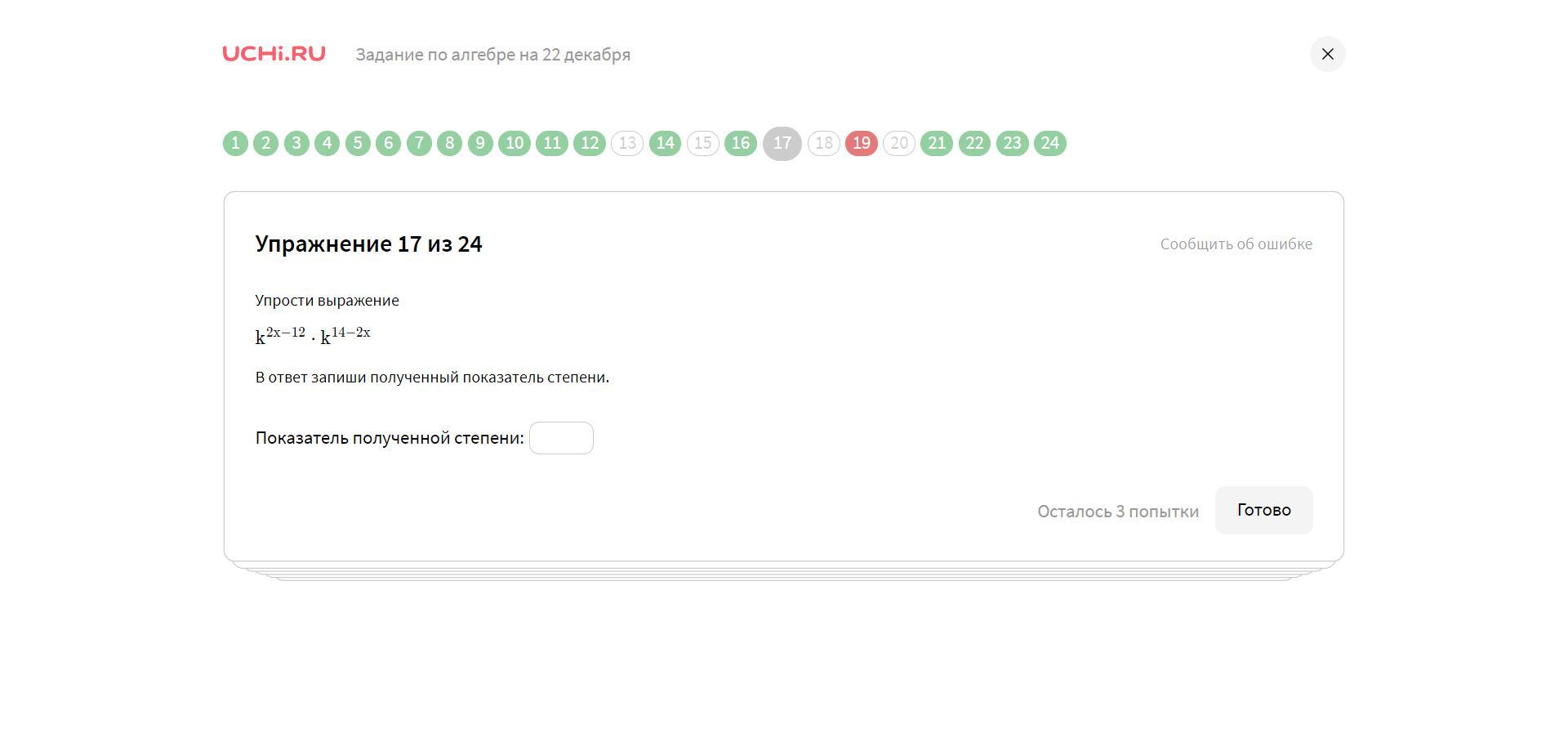 17. k²ˣ⁻¹² * k¹⁴⁻²ˣ = k²ˣ⁺⁽⁻²ˣ⁾⁻¹²⁺¹⁴ = k²;