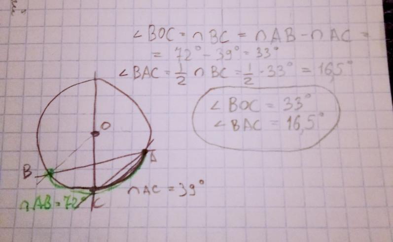 Два угла четырехугольника равны 110° и 120°. Найдите оставшиеся углы четырехугольника, если его можно вписать в окружность. 70° и 60° 80° и 50° 72° и 58° 65° и 65° Вопрос №2 ? 2 балла Градусная мера дуги АВ равна 72о, а дуги АС – 39о, при этом точки А и В лежат в разных полуплоскостях относительно диаметра окружности, проходящего через точку С. Найдите углы ВОС и ВАС, где О – центр окружности 111о и 55,5о 66о и 33о 33о и 16,5о 144о и 78о Вопрос №3 ? 2 балла Точки А и В лежат по одну сторону от прямой на расстоянии 2 см и 10 см от нее. Найдите расстояние от точки М до прямой, если М лежит между А и В и АМ : МВ = 1 : 3. 4 5 6 3 Вопрос №4 ? 2 балла На рисунке ABCD – описанная трапеция, точка О – центр окружности. Найдите РABCD. Ответ Вопрос №5 ? 2 балла В четырехугольнике ABCD AB=10 см, BC=8 см, CD=7 см. Какой длины должна быть сторона AD, чтобы этот четырехугольник можно было описать около окружности? Ответ Вопрос №6 ? 2 балла Найдите среднюю линию трапеции, описанной около окружности, если ее боковые стороны равны 5 см и 7 см. Ответ
