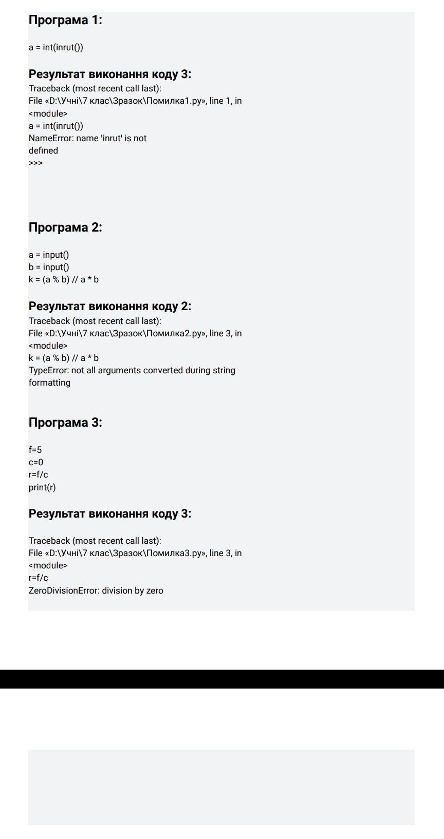 3)Исключение деления на ноль. следует поместить в блок try-except ZeroDivisionError