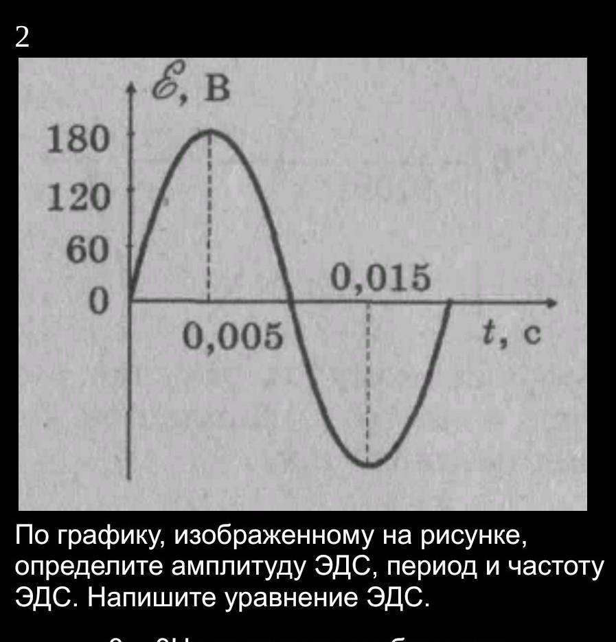 2 По графику, изображенному на рисунке, определите амплитуду ЭДС, период и частоту ЭДС. Напишите уравнение ЭДС.