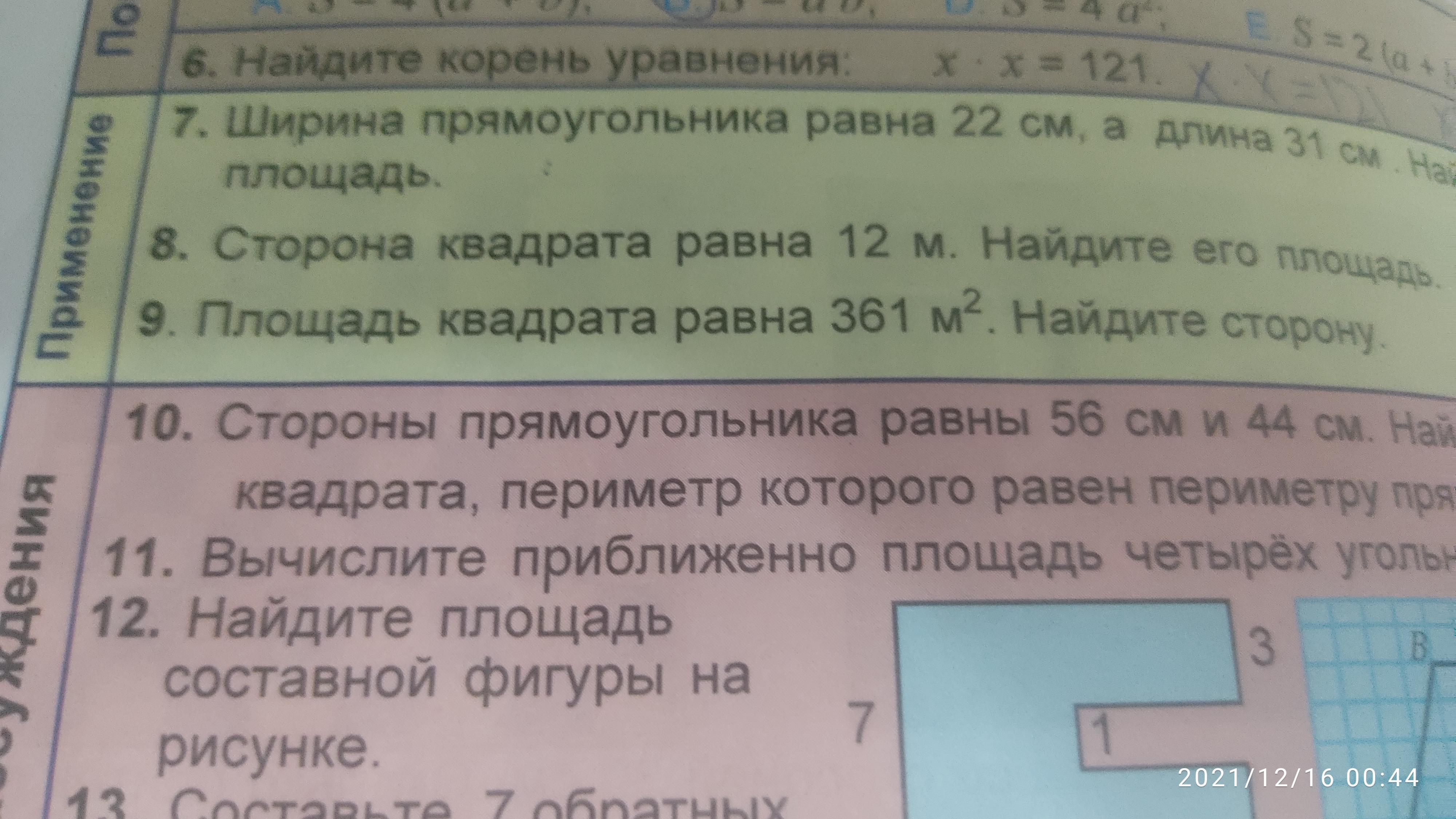 a=19м 19×19=361(м²) S