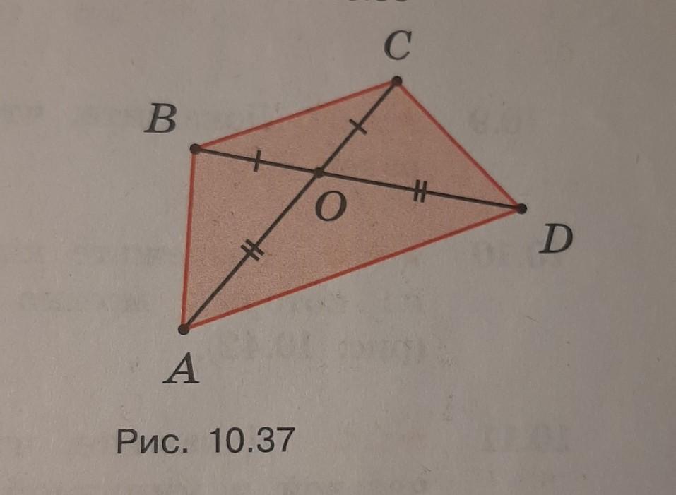 диагонали четырёхугольника АВСD пересекаются в точке О(рис.10.37.).Известно, что AO=OD, BO=OC.Докажите, что угол АВС равен углу ВСD.