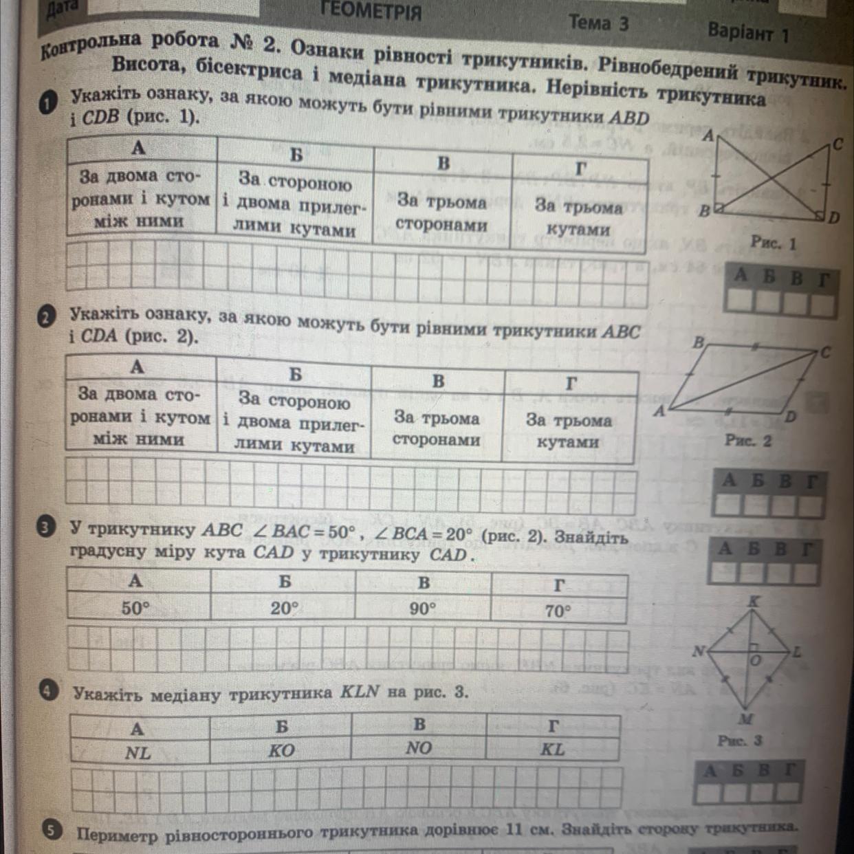 2. За трьома сторонами (АВ=СД, ВС=АД, АС - спільна сторона).