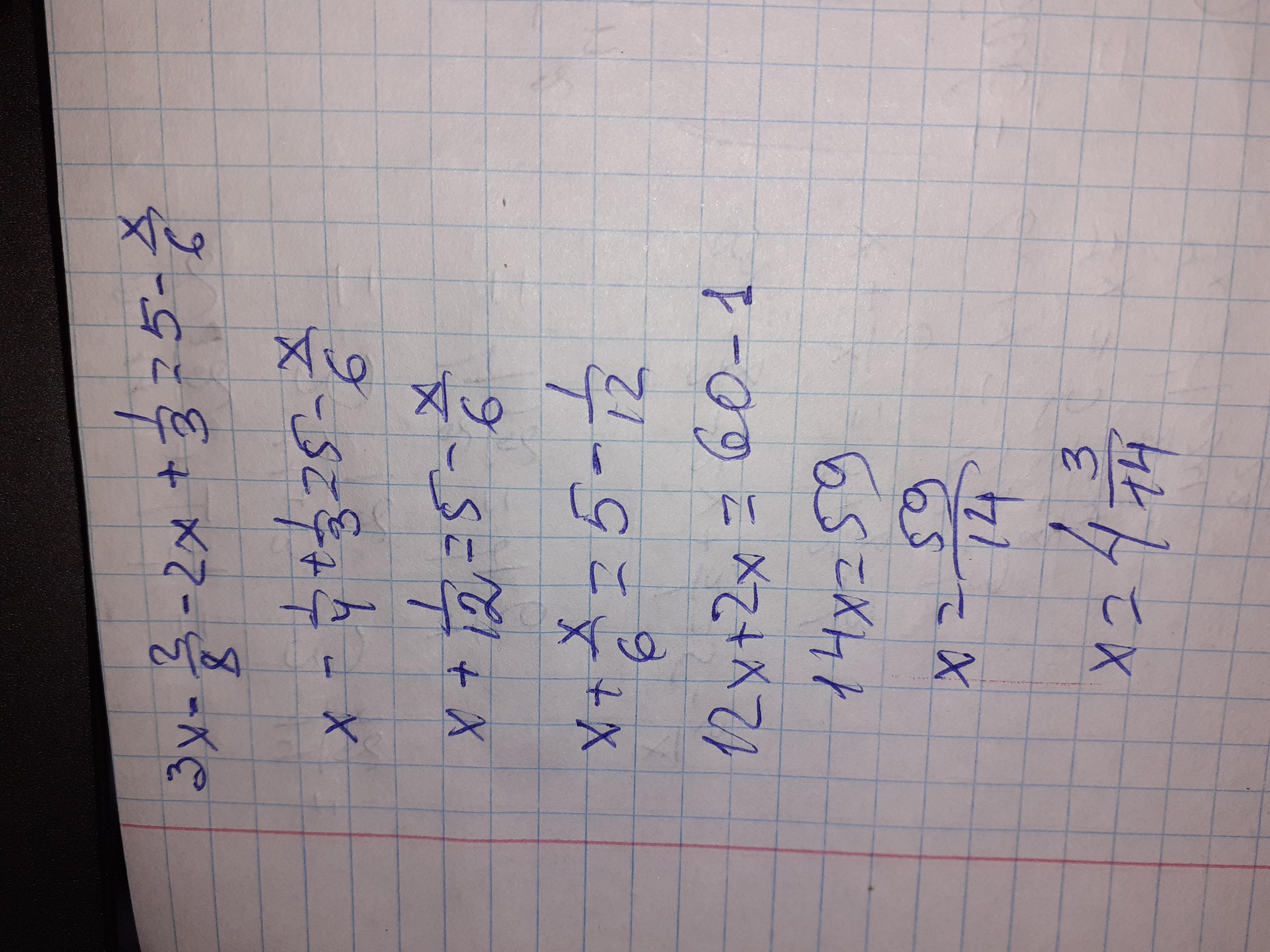 3х-2/8-2х+1/3=5-х/6