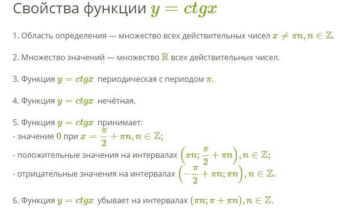 6. Функция y=ctgx убывает на интервалах (πn;π+πn),n∈Z.