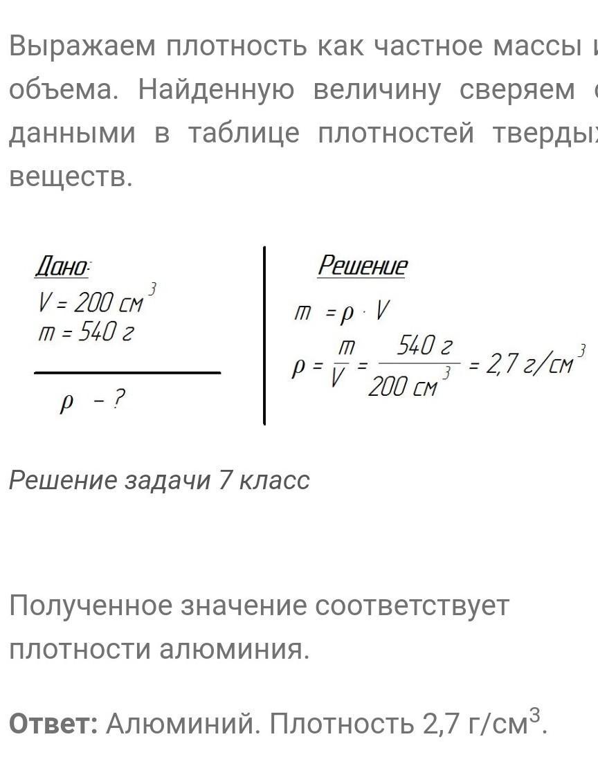 Металический брусок имеет объем 200см в квадрате и массу 510 грамм как найти плотность бруска
