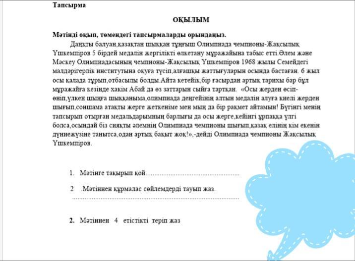3)табыс етті, оқуға түсіп, осында бастаған, сыйға тартқан,
