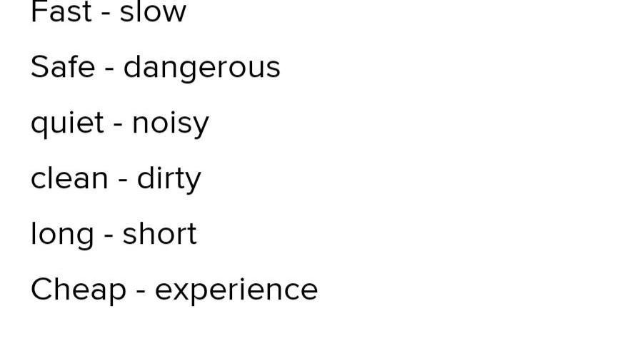 safe-dangerous slow-fast guiet-noisy clean-dirty long-short cheap-eхpensive