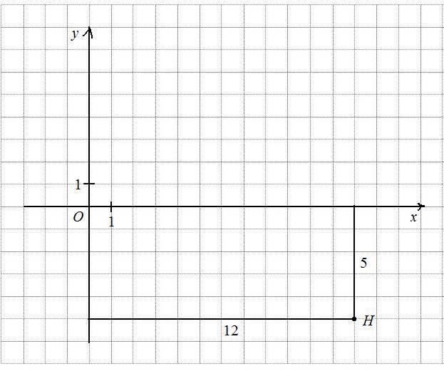 Нужно опустить перпендикуляры от точки Н (12; -5) на оси и найти их длины.