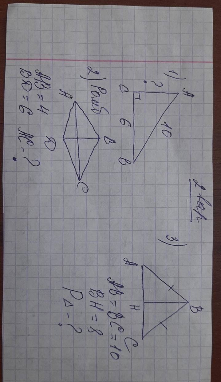 1) АС=6 см(√100-36)