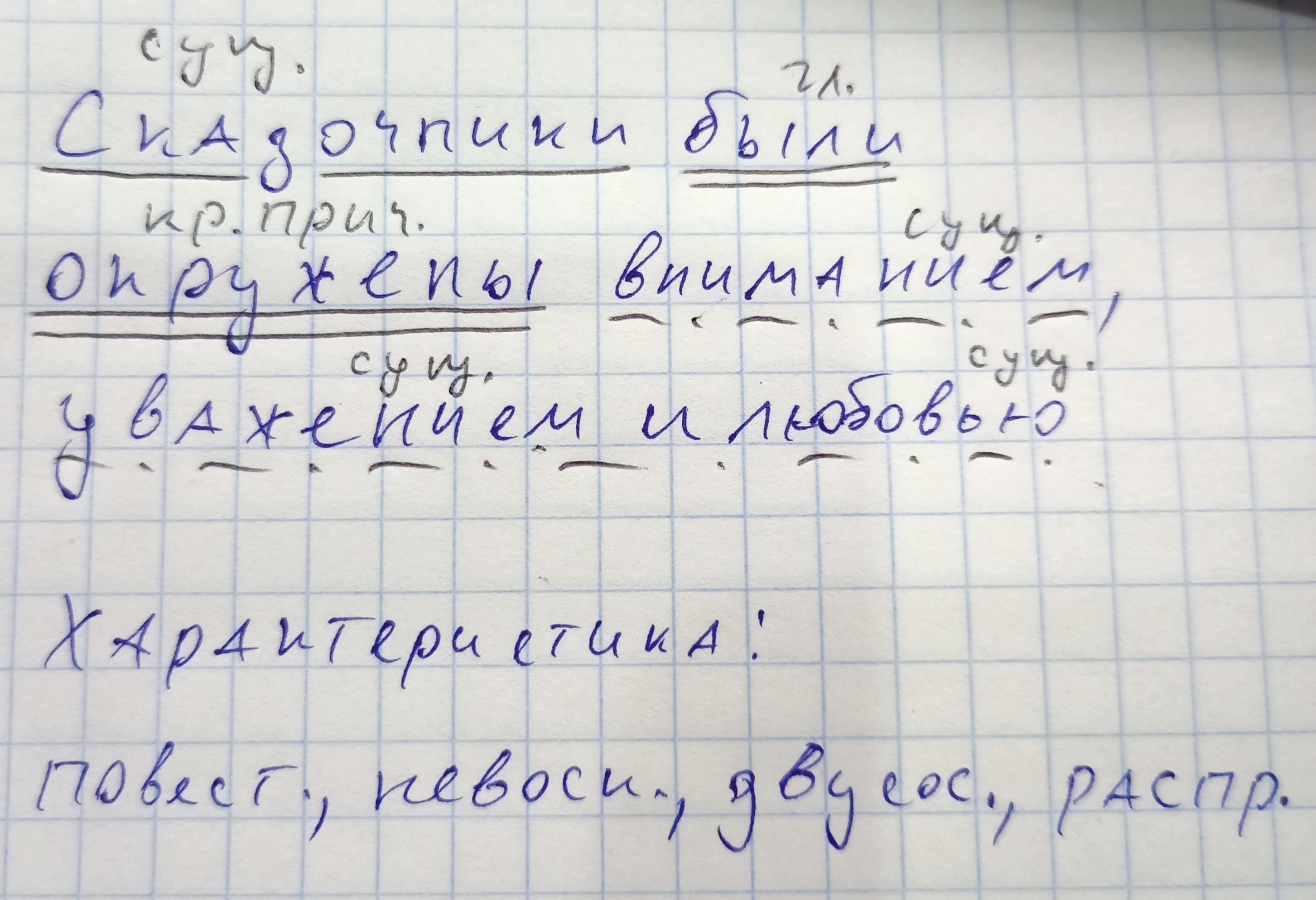 выполнить синтаксический и пунктуационный разбор предложения: Сказочники были окружены вниманием, уважением и любовью.