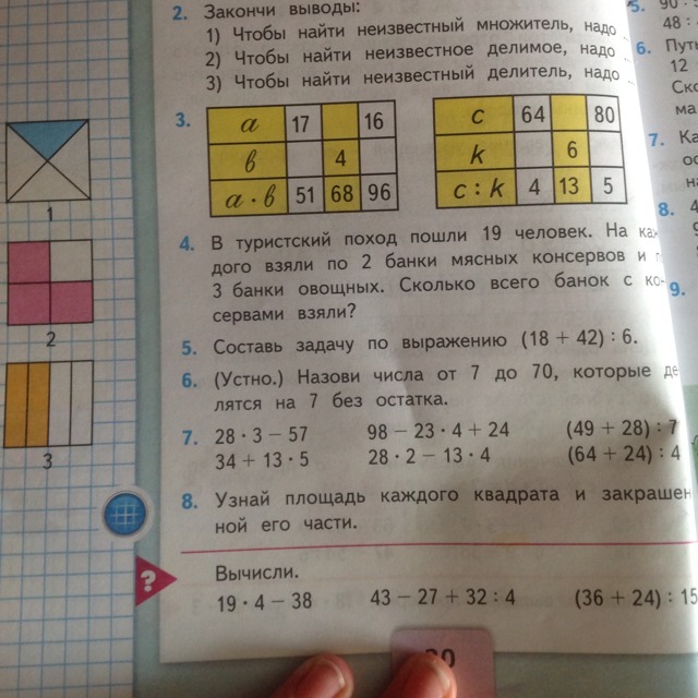 Закрашено: 1=1/4; 2=3/4; 3=2/4 или 1/2