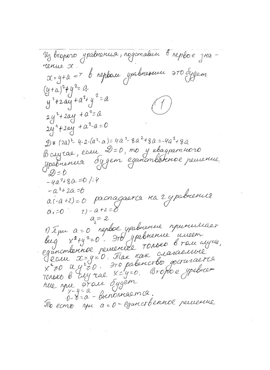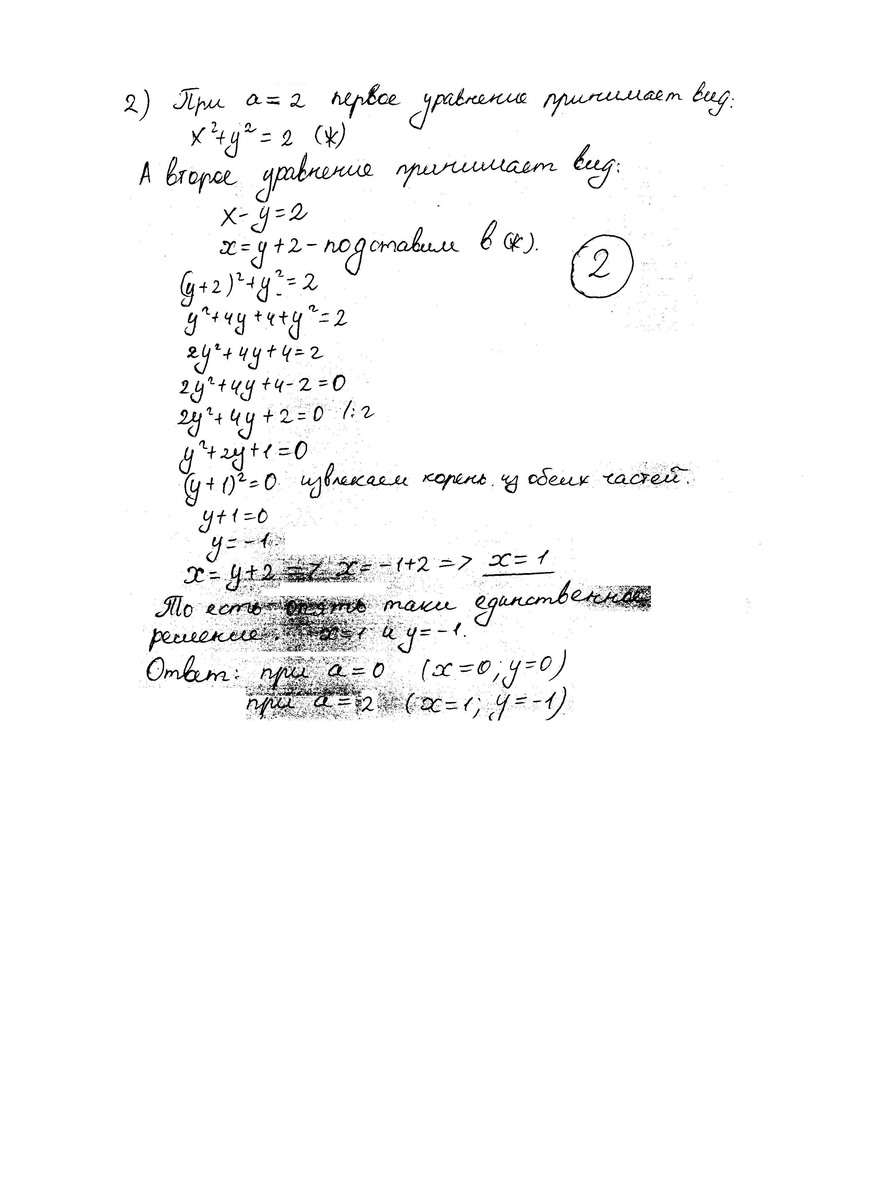 Смотри во вложениях. Всего два ответа а=0 (х=0, у=0), а=2 (х=1, у= -1)