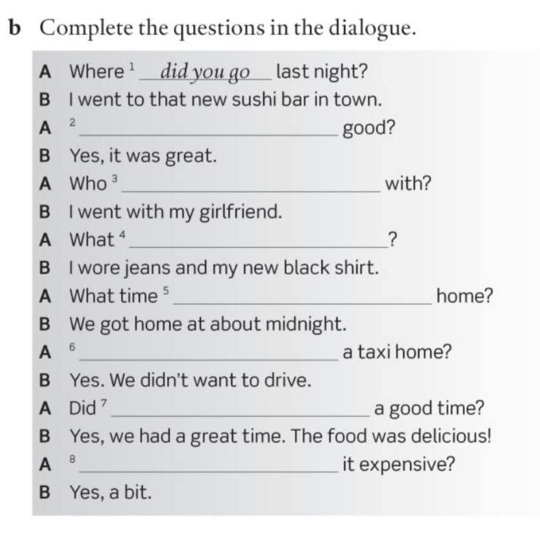 b) Complete the questions in the dialogue.
