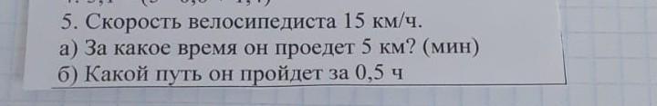 Скорость 15 км/ч говорит нам о том, что велосипедист преодолеет 15 км за один час, а это расстояние в 3 раза больше требуемых 5 км. Следовательно, на преодоление 5 км потребуется в 3 раза меньше времени: разделим 1 час (60 минут) на 3. Ответ: велосипедист, имея скорость 15 км/ч, преодолеет расстояние 5 км за 20 минут
