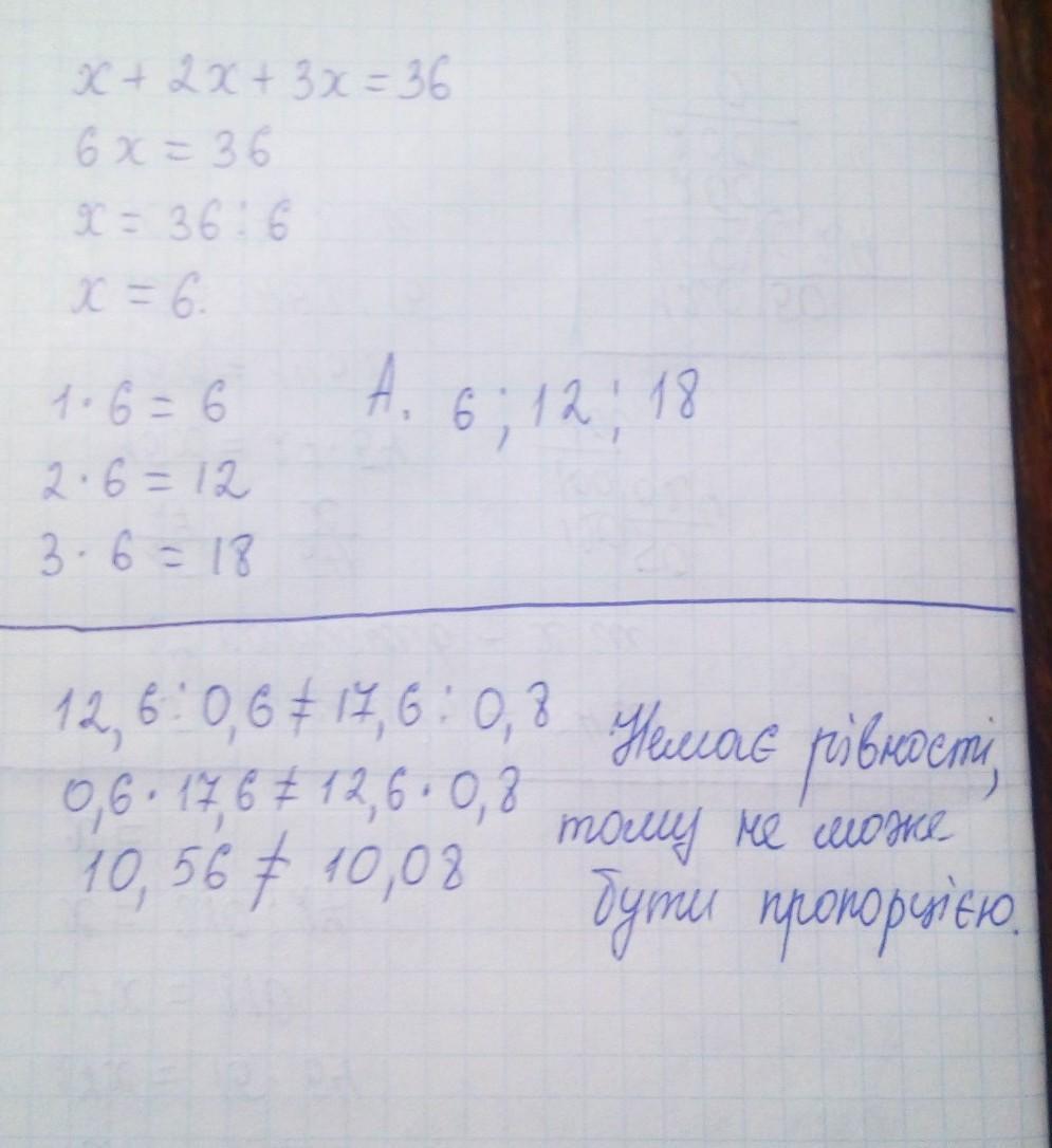 5. Перевірити, користуючись означенням, чи є рівність 12,6:0,6=17,6:0,8 пропорцію.
