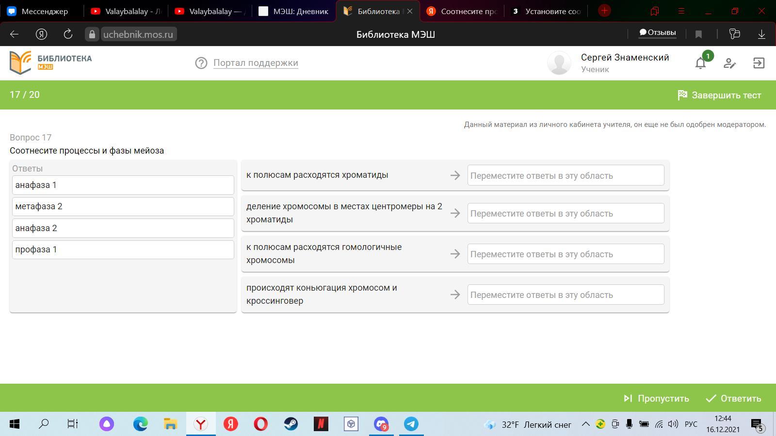 Ответ:метафаза 2,анафаза 2,анафаза 1,профаза 1