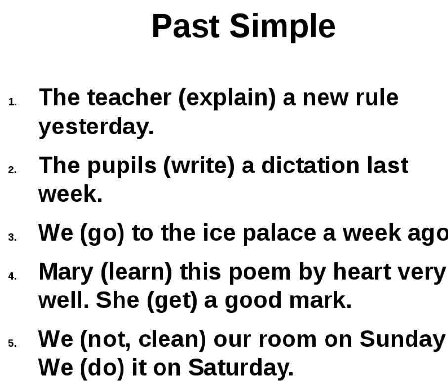 1 explained 2 wrote 3 went 4 learnt 5 got 6 didn’t clean 7 did