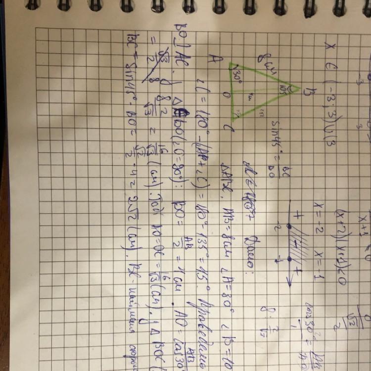1)Сторона АВ треугольника ABC равна 8 см, A = 30ºB = 105°.