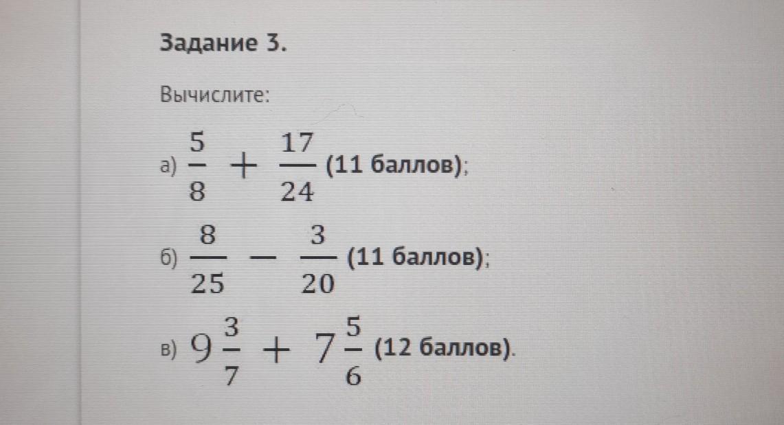 Б)8/25-3/20=32/100-15/100=17/100