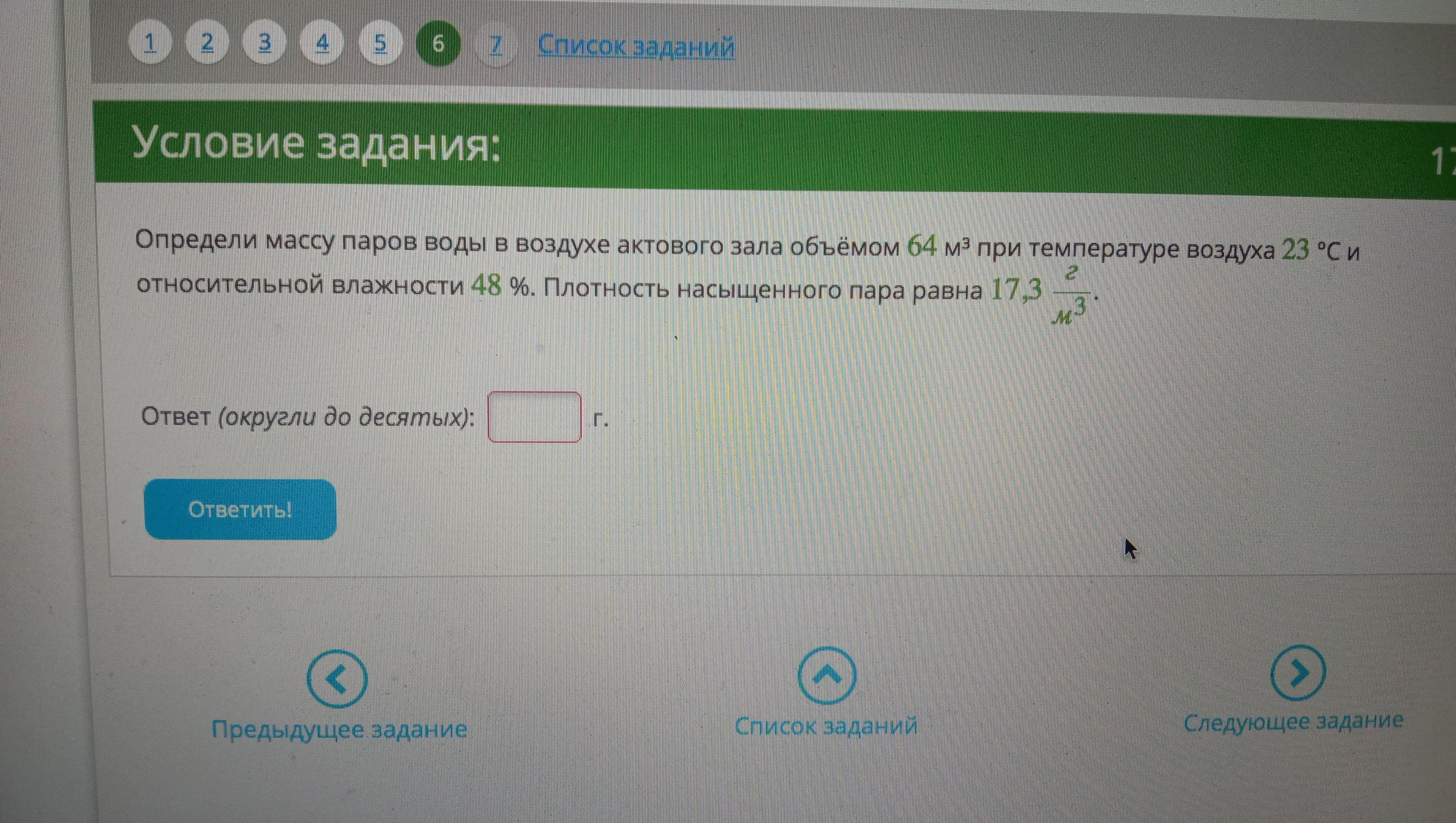 V=64 м³ φ=0,48 (48%) ρн=17,3 г/м³ m=?