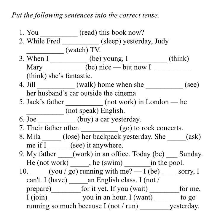 - My father works in an office. Today is Sunday. He isn't working, he is swimming in the pool.