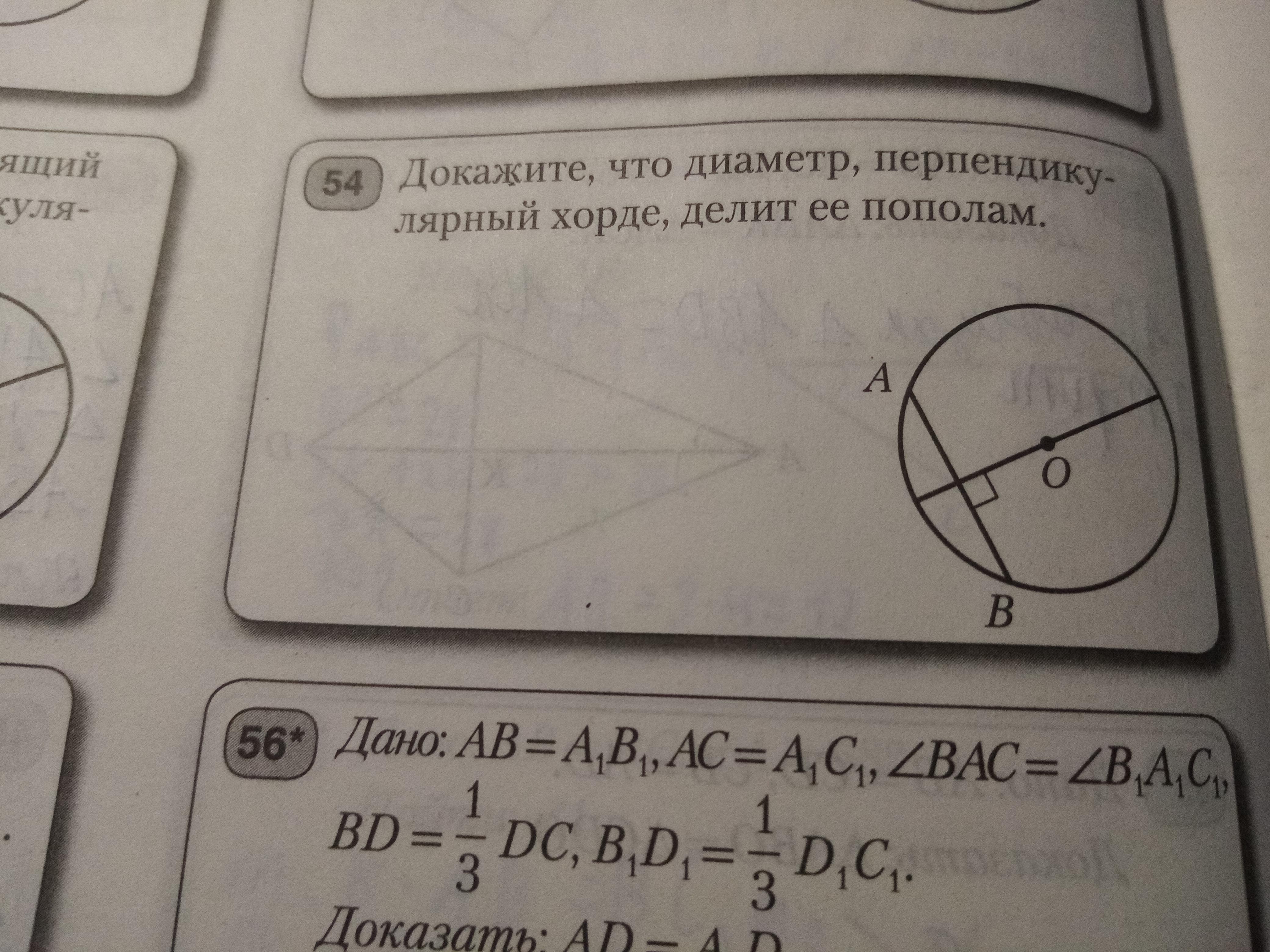 значит, высота, проведенная к хорде (пусть ОН) есть медиана