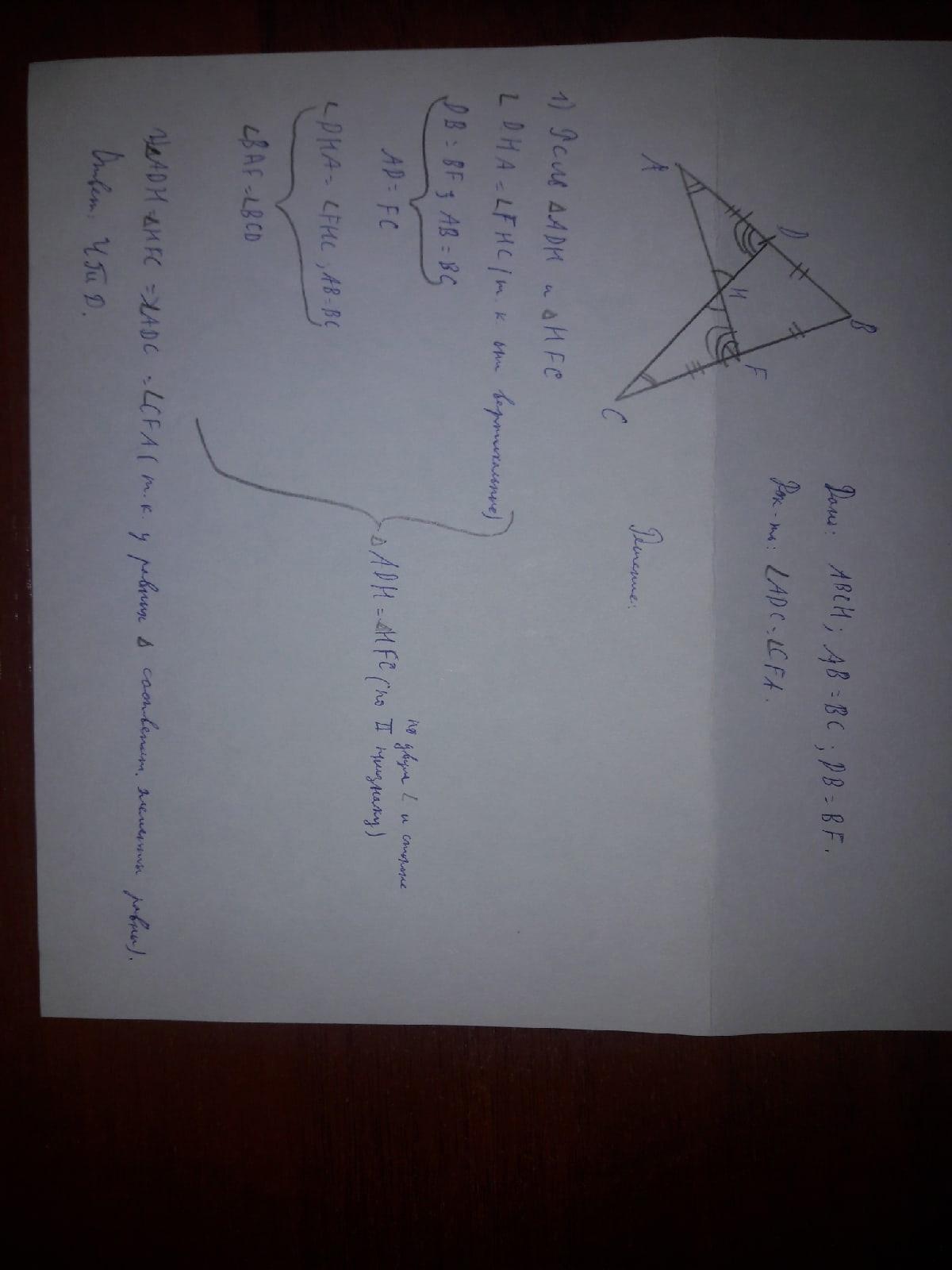 На рисунке AB = BC, DB = HF. Докажите что ADC = CFA