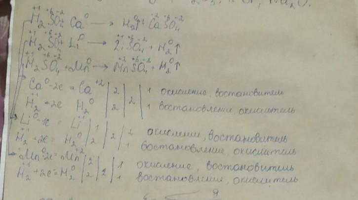 серная кислота концентрированная + кальций, разбавленная серная кислота и литий, серная кислота концентрированная + марганец