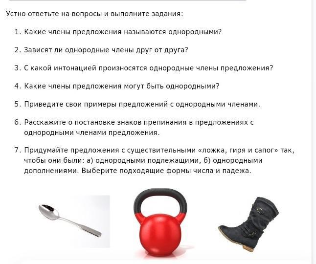 7) первый пример: Сегодня, придя со школы я увидел(а) ложку, гирю и сапог, которые лежали на полу.