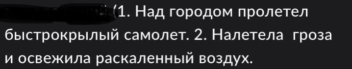 Над(точка-тире, предлог) городом(точка-тире, существительное) пролетел(двумя чертами, глагол) быстрокрылый (волнистой линией, прилагательное) самолет(одной чертой, существительное).