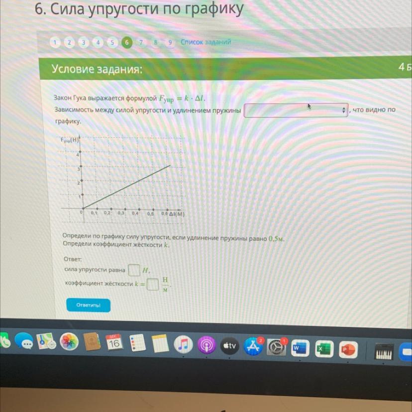 Зависимость между силой упругости и удлинением пружины прямо пропорционально, что видно по графику.