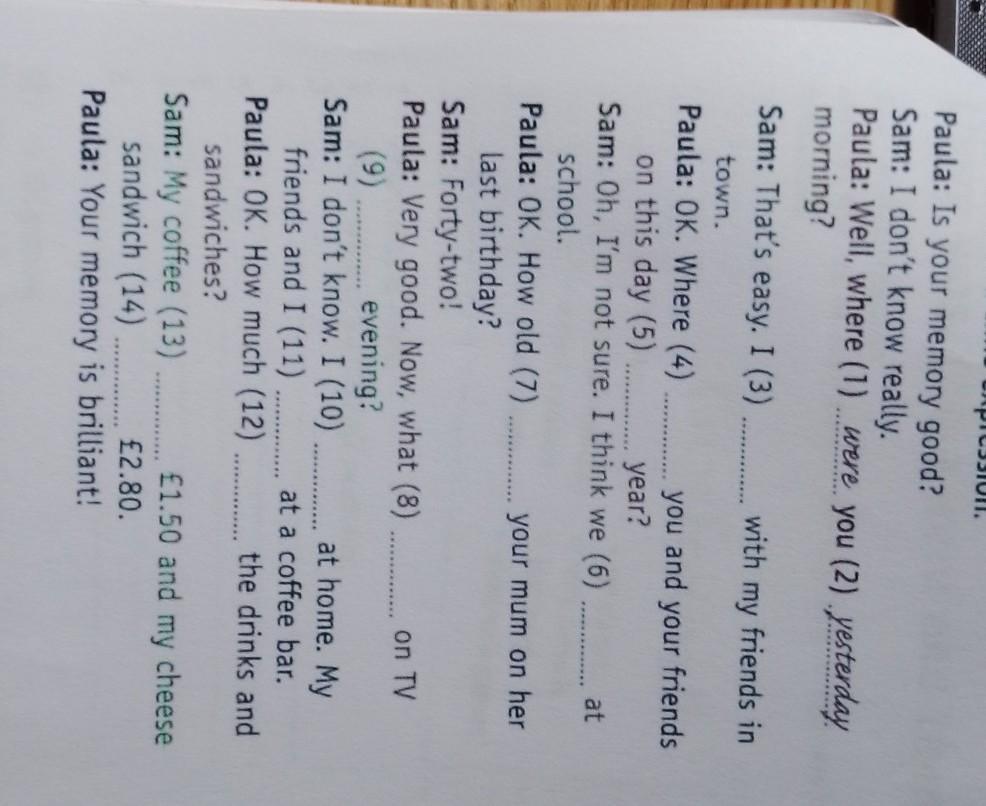3)was 4)were 5)last 6)were 7)is 8)was 9)last 10)wasn't 11)was 12)were 13)was 14)was