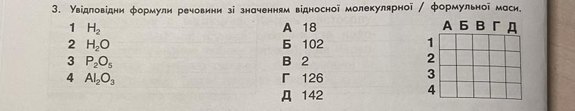 3. Увідповідни формули речовини зі значенням відносної молекулярної / формульної маси.