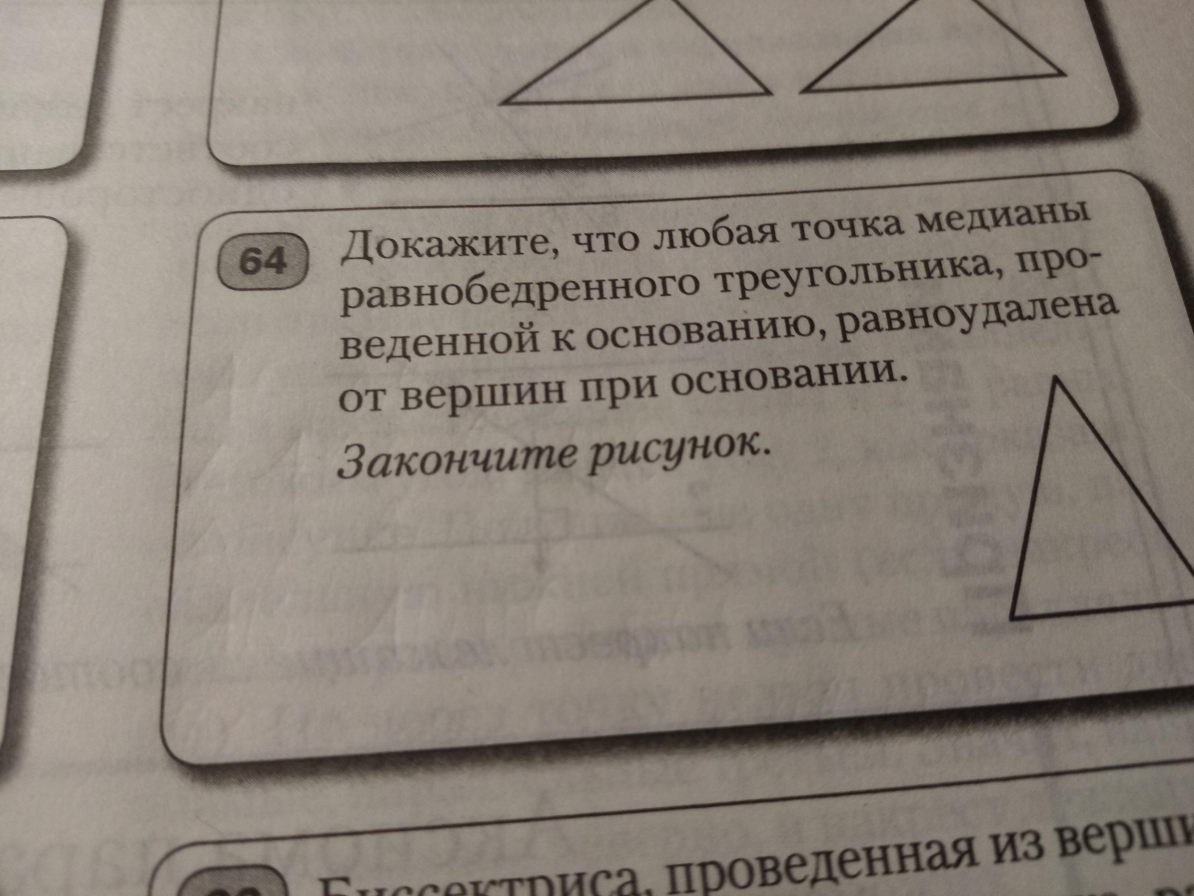 так как медиана,проведенная из вершины к основанию является биссектрисой и высотой , то медиана является серединным перпендикуляром. Любая точка серединного перпендикуляра к отрезку равноудалена от его концов, что и требовалось доказать