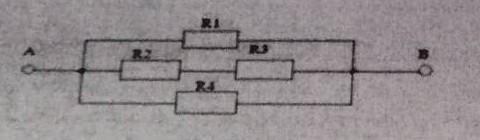 проводники с сопротивлениями R1=6 Om, R2=3 Om, R3=3 Om, R4=6 Om объединяются согласно схеме. Определите полное сопротивление цепи.