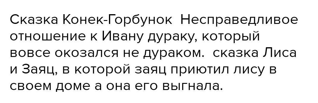 Привести примеры несправедливого отношения одних героев сказок (рассказов) к другим. Объяснить, почему вы так считаете.